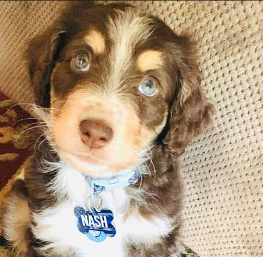 Blue/Black Vintage 2 Sided Girl Bone Shaped Customized Dog Tag -